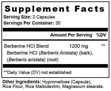 Active: Berberine HCl blend — Berberis aristata (bark and root).